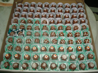 Há alguns dias, recebemos uma encomenda da Marine para fazermos os docinhos do seu casamento. Foi uma encomenda grande (2.000 docinhos e 500 caixinhas para as trufas). Nosaa!!! Deu um trabalhão, mas entregamos tudinho do jeito que ela queria. Os docinhos ficaram lindos e deliciosos. Recebemos vários elogios.